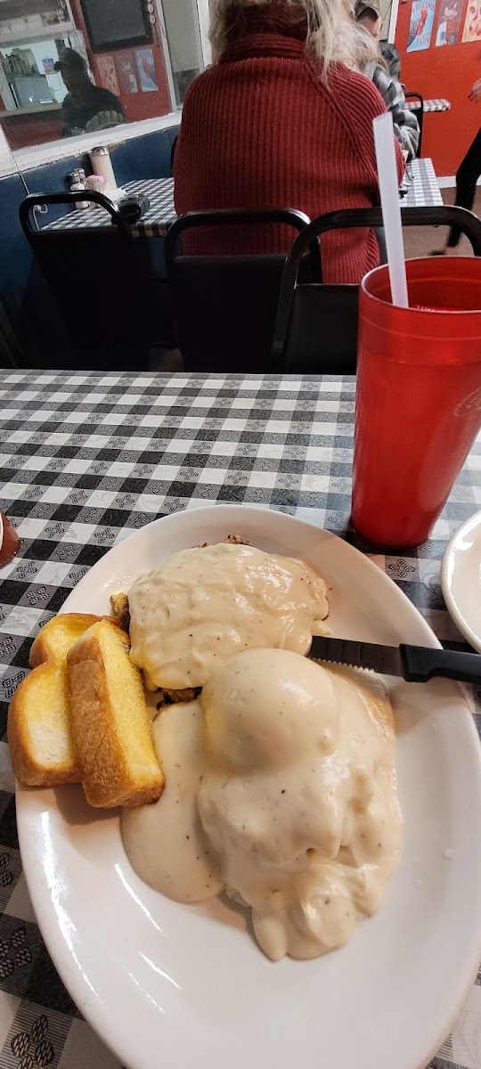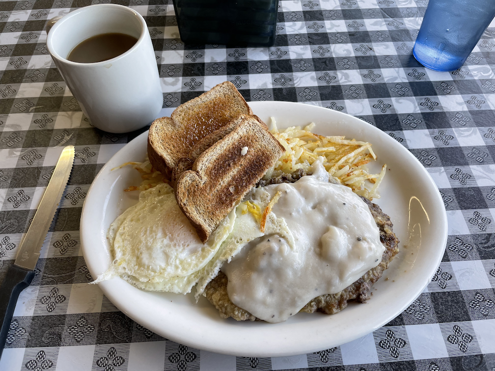 A few standout dishes to try include their Country Fried Steak, a tender and crispy cut of meat smothered in savory gravy, paired with creamy mashed potatoes and a side of buttered vegetables. Another must-try is the Chicken Fried Chicken, which features a juicy, perfectly breaded chicken breast served with a side of golden fries and a tangy homemade coleslaw. For breakfast lovers, their Pancake Stack is a sweet, indulgent treat, with pancakes that are fluffy and just the right amount of buttery.